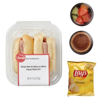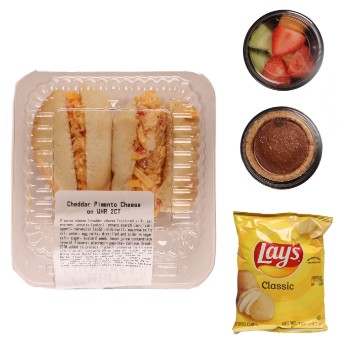 <p>Served with potato chips, fresh fruit, and a Chocolate Fudge Tart. Drink not included. Fruit selection may vary.</p>